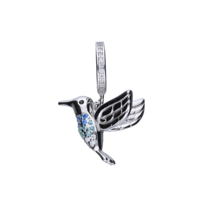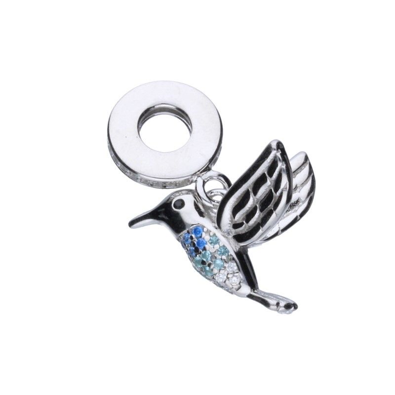 ANHÄNGER IN PERLENFORM, GEEIGNET FÜR MODULARE ARMBÄNDER MIT EINEM MAXIMALEN DURCHMESSER VON 3 mm, 925er SILBER, RHODIUMBESCHICHTET, BUNTES ZIRKONIA, HUMBBING.