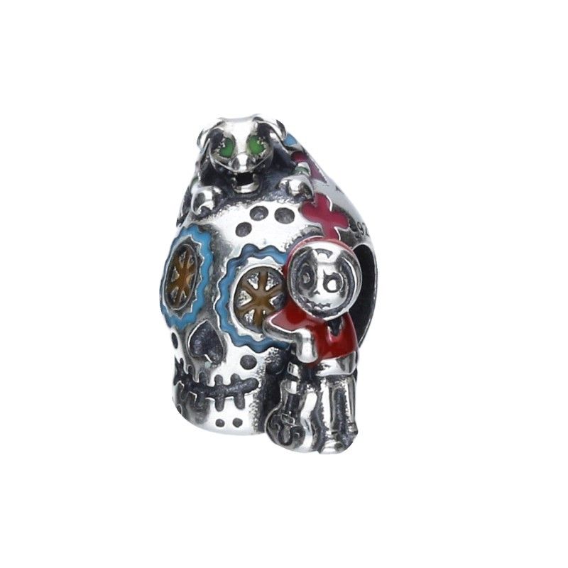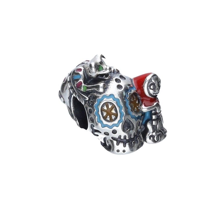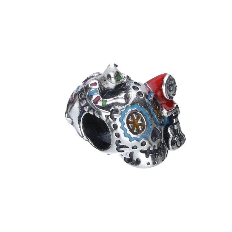 PERLENANHÄNGER GEEIGNET FÜR MODULARE ARMBÄNDER MIT EINEM MAX. DURCHMESSER VON 3 mm, 925 SILBER RHODINIERT, BUNTE EMAILLE, SCHÄDEL, SCHÄDEL, TIER, HEXE.