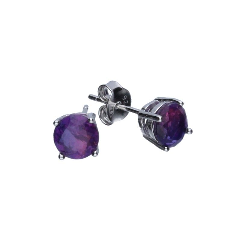 OHRRINGE MIT TURMALIN, EINEM STEIN MIT EINER STARKEN SCHUTZ- UND REINIGUNGSWIRKUNG NEGATIVER ENERGIE, 925 SILBER, RHODIUMBESCHICHTET, OHRRINGE MIT EINEM DURCHMESSER VON 6 mm, AMETHYST.