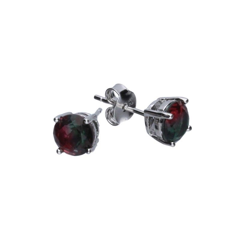 OHRRINGE MIT TURMALIN, EINEM STEIN MIT EINER STARKEN SCHUTZ- UND REINIGUNGSWIRKUNG NEGATIVER ENERGIE, 925 SILBER, RHODINIERT, OHRRINGE MIT EINEM DURCHMESSER VON 6 mm, IN Burgund und Grün.
