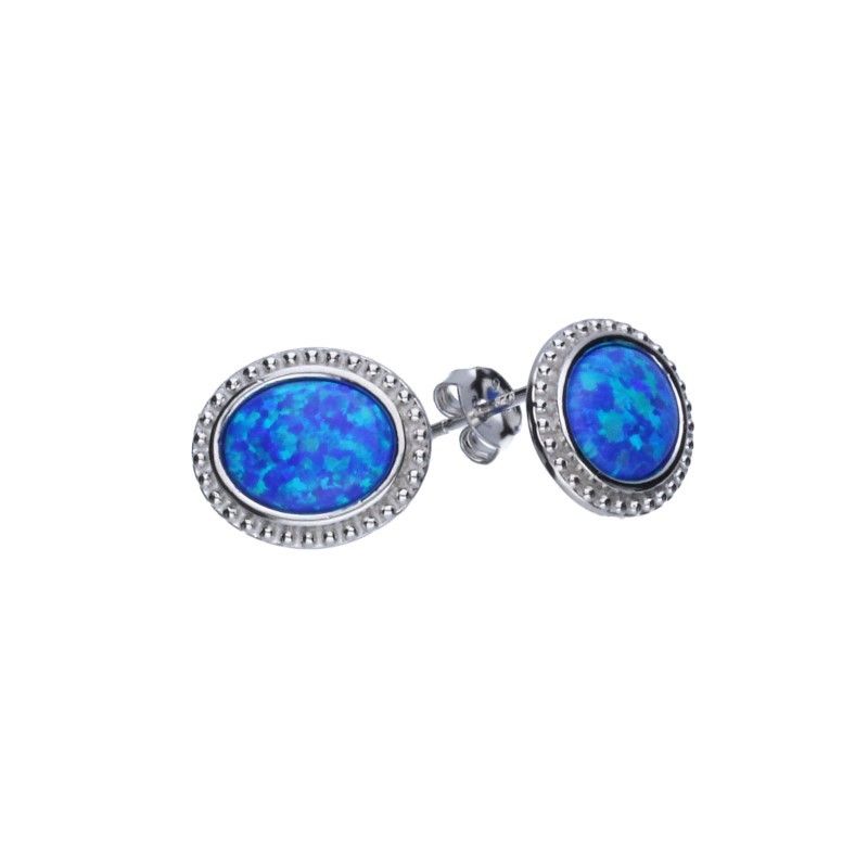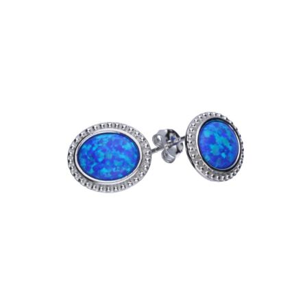 OHRRINGE AUF STÄBCHEN, 925 SILBER, RHODINIERT, BLAUER OPAL IN EINEM SILBERSCHLAUCH, OVAL, 10 mm X 12 mm.