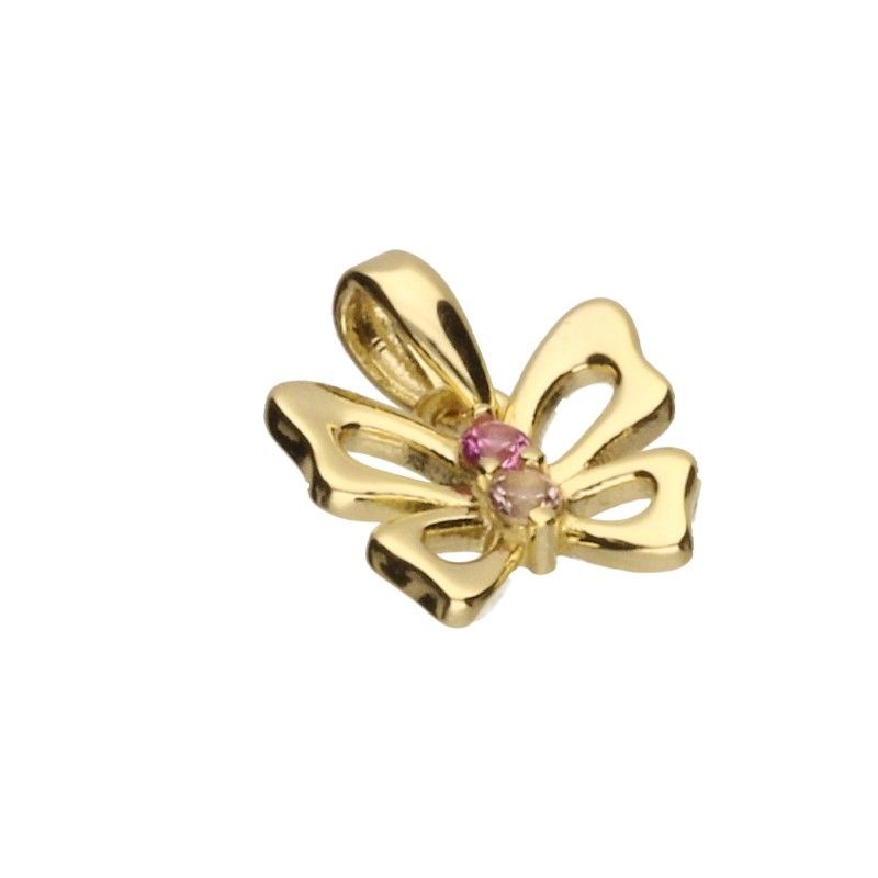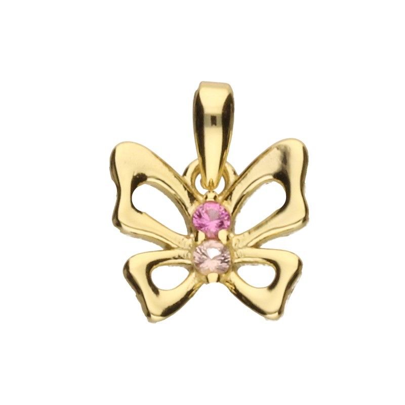 ANHÄNGER, 925 SILBER, VERGOLDET MIT 24 KARAT GOLD, ROSA ZIRKONIA, SCHMETTERLING, GRÖSSE 10 mm X 10 mm OHNE KRAWATTE.