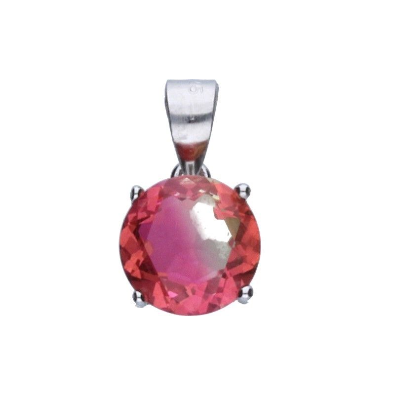 ANHÄNGER MIT TURMALIN, EINEM STEIN MIT EINER STARKEN SCHUTZ- UND REINIGUNGSWIRKUNG NEGATIVER ENERGIE, 925 SILBER, RHODIUMBESCHICHTET, ANHÄNGER MIT EINEM DURCHMESSER VON 8 mm, FUCHSIA- UND CHAMPAGNERFARBE.