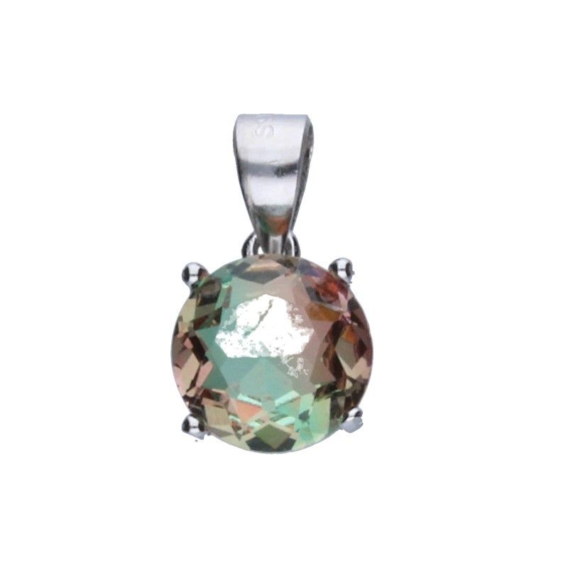 ANHÄNGER MIT TURMALIN, EINEM STEIN MIT STARKER SCHUTZWIRKUNG UND REINIGENDER NEGATIVER ENERGIE, 925 SILBER, RHODIUMBESCHICHTET, ANHÄNGER MIT 8 mm DURCHMESSER, ROSA, ORANGE UND GRÜN, WASSERMELONE.