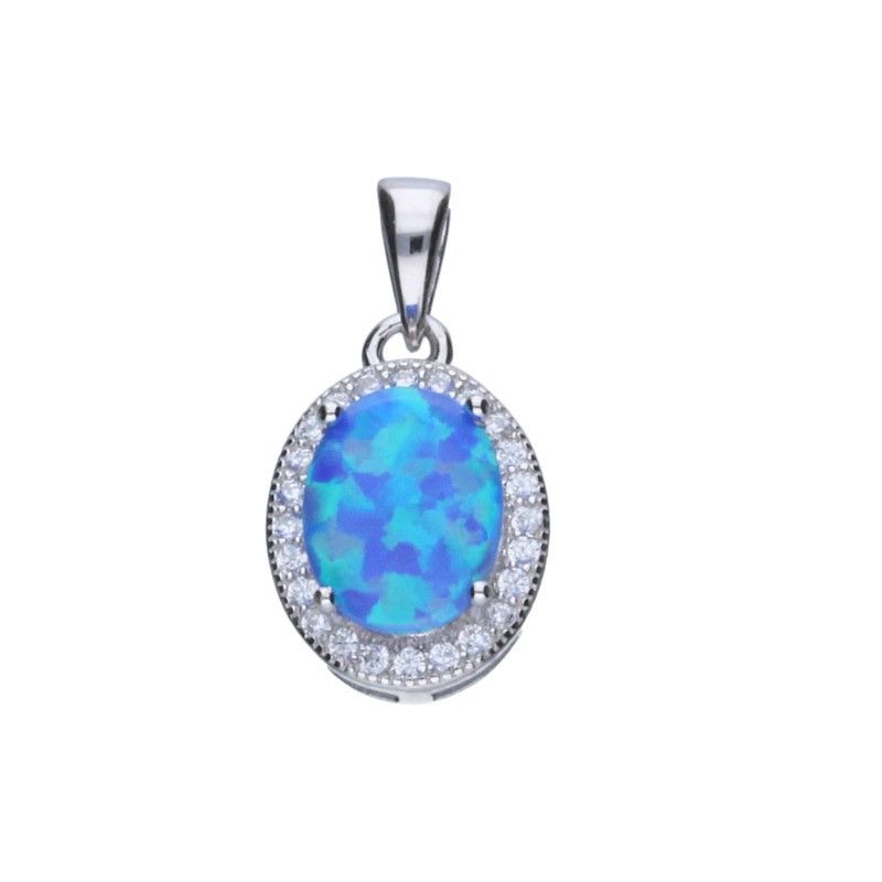 MARQUISE-ANHÄNGER, 925 SILBER, RHODINIERT, WEISSER ZIRKONIA UND BLAUER OPAL, OVAL, 9 mm X 11 mm, OHNE BAND.