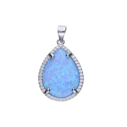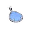 ANHÄNGER AUS 925-SILBER, RHODIUMBESCHICHTET, WEISSES ZIRKONIA, BLAUER EINFANGOPAL, TROPFEN, MANDEL, GRÖSSE 17 mm x 22 mm, OHNE BAND.