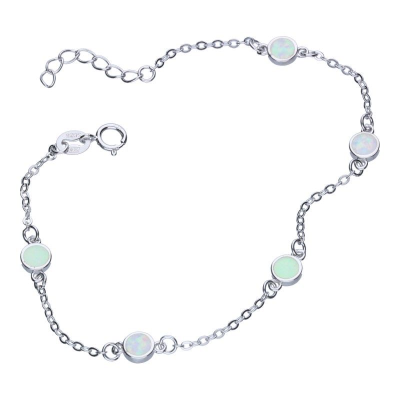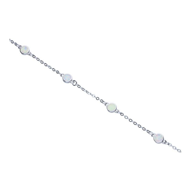 ARMBAND MIT WEISSEN OPALEN, 925er SILBER, RHODINIERT, LÄNGE 18 cm + 2 cm VERLÄNGERUNG, RINGDURCHMESSER 5 mm.