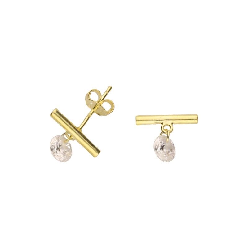 GEOMETRISCHE OHRSTECKER, 925 SILBER VERGOLDET MIT 24 KARAT GOLD, WEISSER ZIRKONIA, ROHRABMESSUNGEN 11 mm X 2 mm.