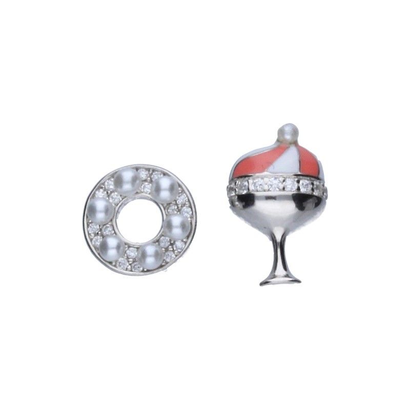 Ohrstecker, 925er Silber, rhodiniert, weißer Zirkon und Perlen, bunte Emaille, Eiscreme, Dessert, Spende mit einem Durchmesser von 8 mm.