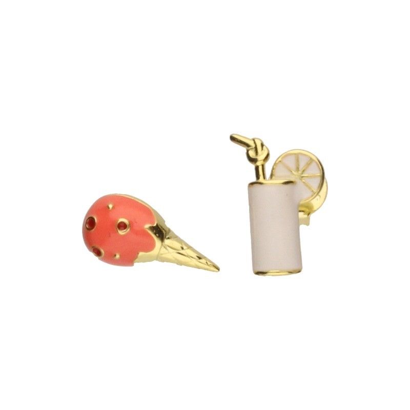 Ohrstecker aus 925er Silber, 24 Karat vergoldet, bunte Emaille, Getränk, Eiscreme, Größe 6 mm x 11 mm.