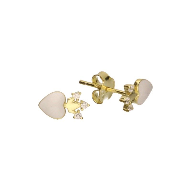 Ohrstecker aus 925er Silber, 24 Karat vergoldet, weiße Emaille, weißes Zirkonoxid, Herzen, Krone, 5 mm x 9 mm OHRRINGE.