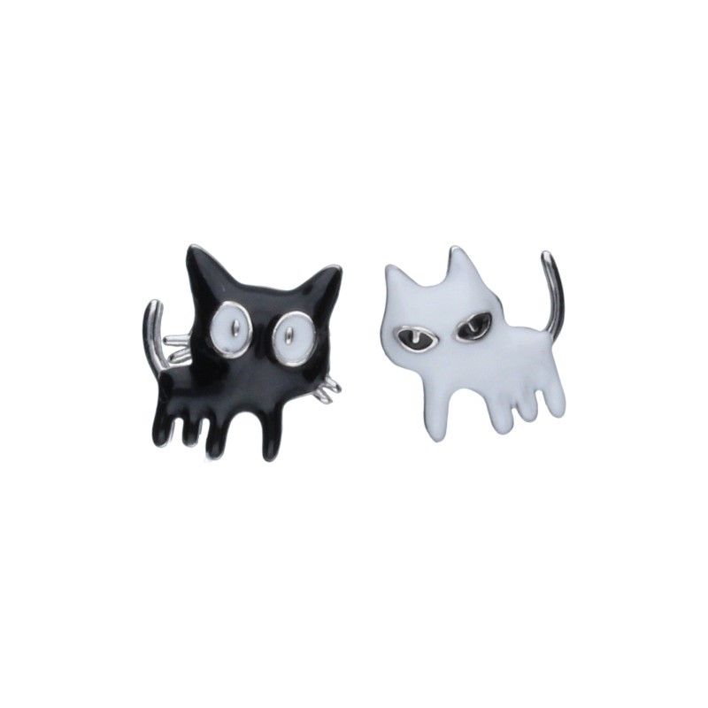 Ohrstecker, 925er Silber, rhodiniert, weiße und schwarze Emaille, Katzengrößen 9 mm x 9 mm und 10 mm x 10 mm.