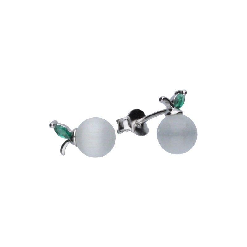 OHRRINGE AUF STÄBCHEN, 925 SILBER, RHODINIERT, PERLMUTT, GRÜNER ZIRKONIA, PERLMUTT, FRUCHT, OHRRINGABMESSUNGEN 6 mm x 10 mm.