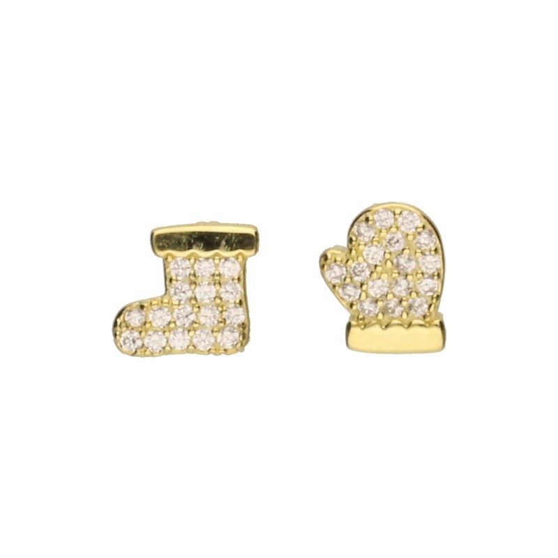 Ohrstecker aus 925er Silber, 24 Karat vergoldet, weißer Zirkon, OHRRINGGRÖSSE 6 mm x 8 mm und 7 mm x 7 mm, Handschuh und Schuh des Weihnachtsmanns.