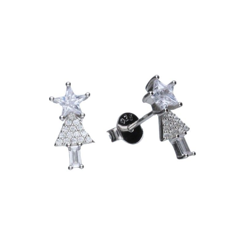 Ohrstecker aus 925er Silber, rhodiniert, weißer Zirkon, OHRRINGGRÖSSE 6 mm x 13 mm, WEIHNACHTSBAUM, STERN.