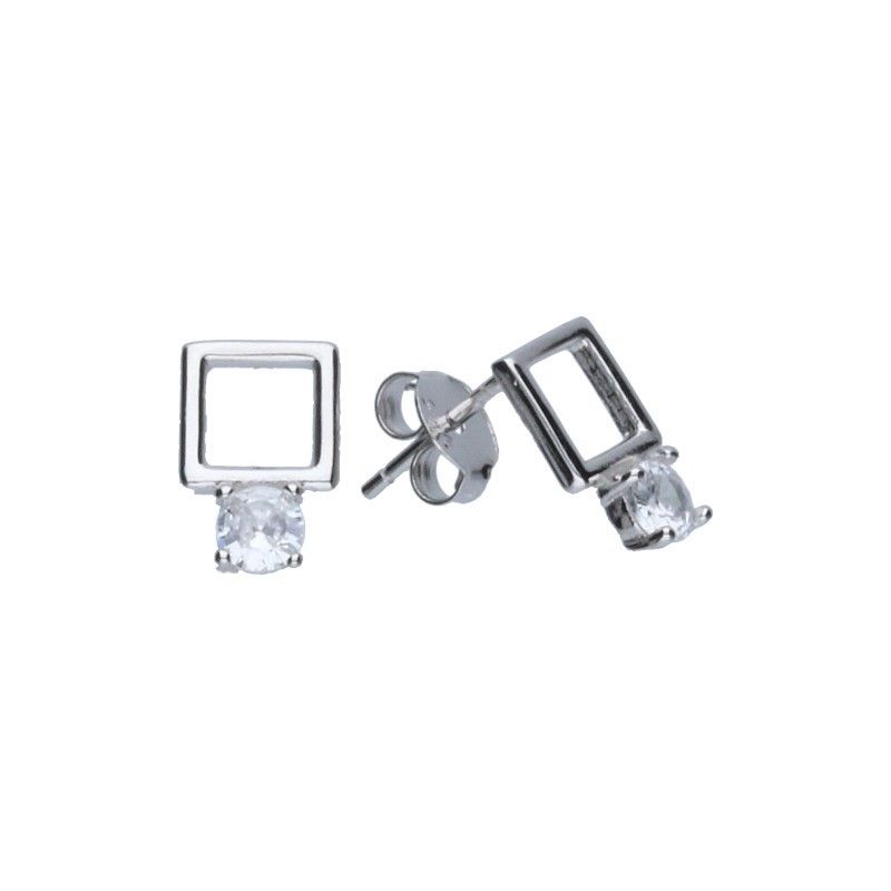 GEOMETRISCHE STOLZENOHRRINGE, 925 SILBER RHODINIERT, WEISSER ZIRKONIA, OHRRINGABMESSUNGEN 6 mm x 10 mm.