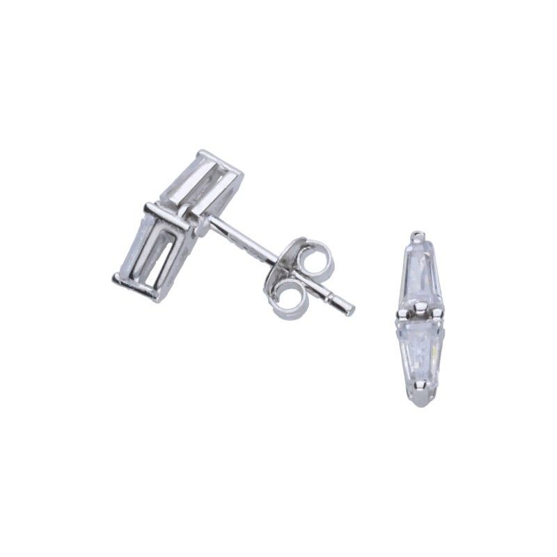 HÄNGENDE STAB-OHRRINGE, 925er SILBER, RHODINIERT, ZIRKONIA IM BAGUETTE-TYP, OHRRINGABMESSUNGEN 3 mm x 10 mm.