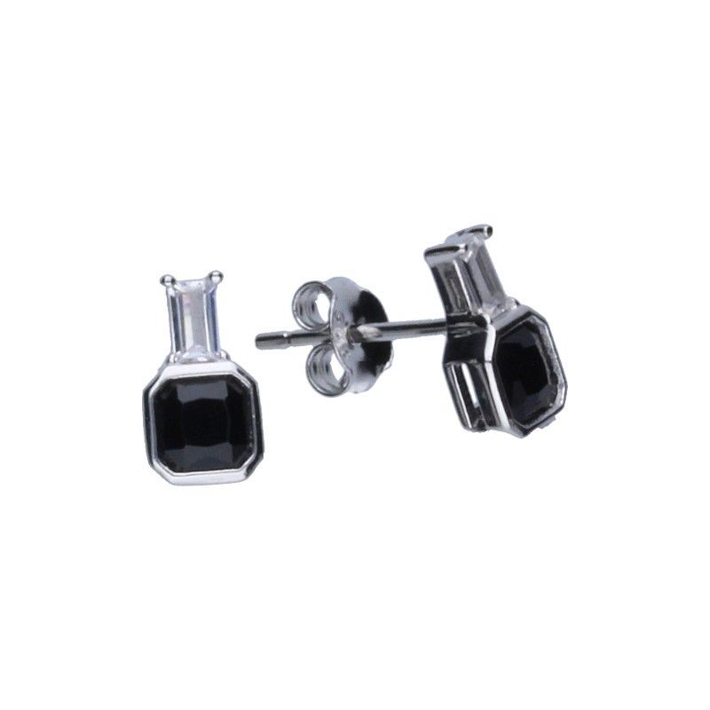 Ohrstecker aus 925er Silber, rhodiniert, weißer und schwarzer Zirkon, OHRRINGABMESSUNGEN 5 mm x 9 mm.