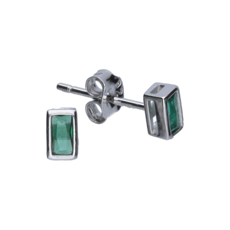Ohrstecker aus 925er Silber, rhodiniert, Baguette-Zirkonia, Smaragdfarbe, OHRRINGABMESSUNGEN 3 mm x 5 mm.
