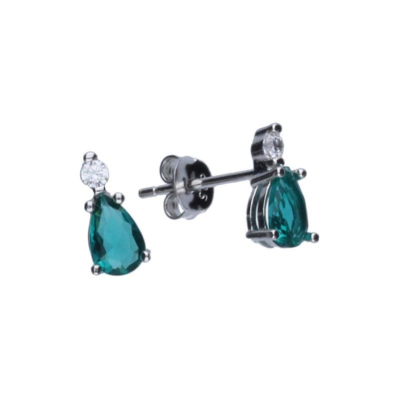 OHRRINGE AUF STÄBCHEN, 925 SILBER, RHODIUMBESCHICHTET, WEISSES UND SMARAGD-ZIRKONIA, TRÄNE, MANDEL, OHRRINGABMESSUNGEN 5 mm x 9 mm.