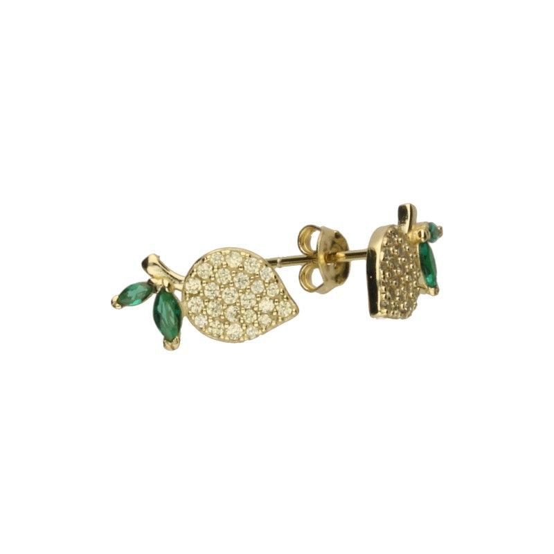 Ohrstecker aus 925er Silber, vergoldet mit 24 Karat Gold, farbenfrohen winzigen Zirkonen, Früchten, Zitronen, Größe 7 mm x 13 mm.
