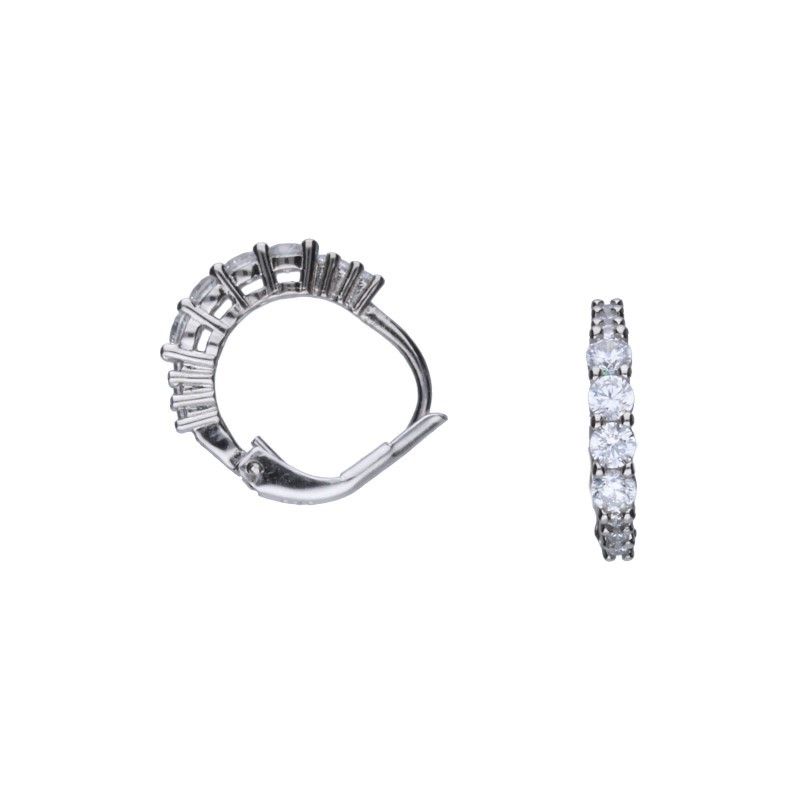 OHRRINGE MIT FRANZÖSISCHER KLEMME, 925 SILBER, RHODINIERT, WEISSER ZIRKONIA, OHRRINGABMESSUNGEN 14 mm x 15 mm.
