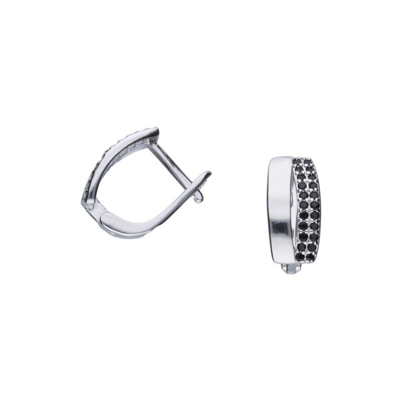 OHRRINGE MIT ENGLISCHER KLEMME, 925er SILBER, RHODINIERT, SCHWARZES ZIRKONIA, OHRRINGABMESSUNGEN 6 mm x 12 mm.