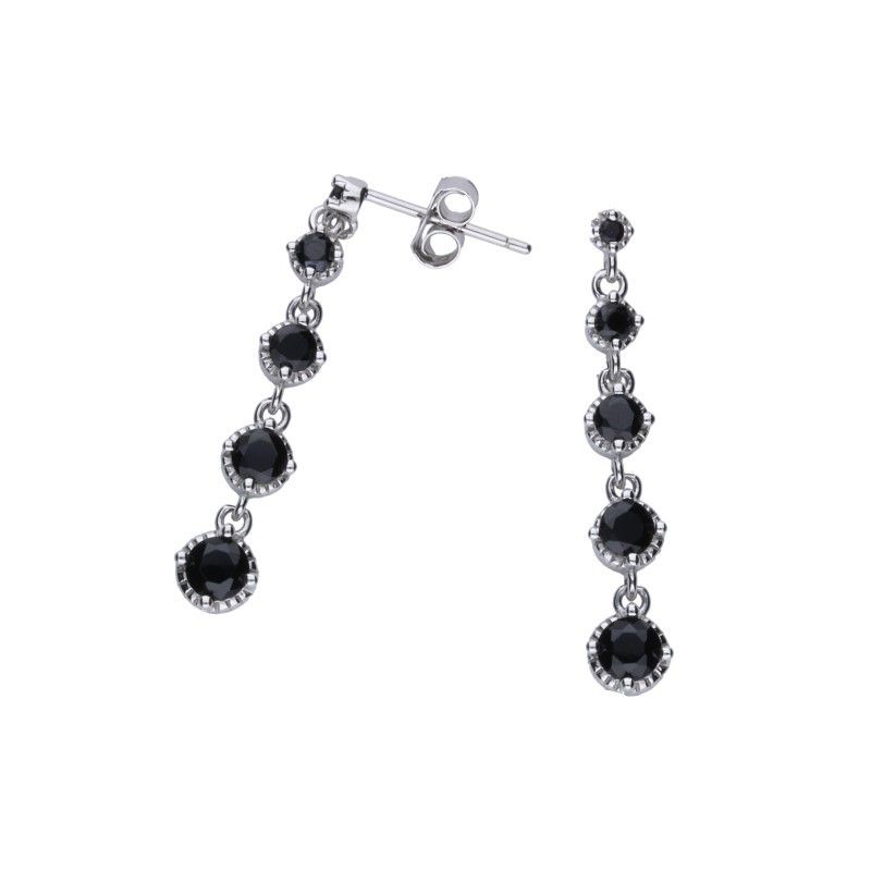 HÄNGENDE STAB-OHRRINGE, 925er SILBER, RHODINIERT, SCHWARZES ZIRKONIA, GESAMTLÄNGE DER OHRRINGE 30 mm.