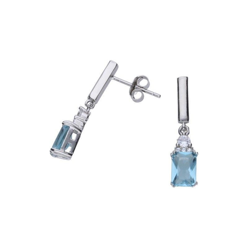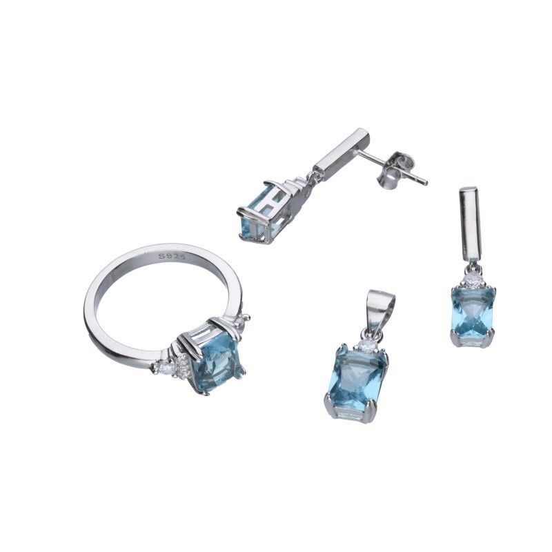 SET ANHÄNGER, HÄNGENDE OHRSTECKER PLUS RINGGRÖSSE 12, 925 SILBER RHODINIERT, WEISSER ZIRKONIA PLUS HAUPTSTEIN TURMALIN, ANHÄNGERABMESSUNGEN 7 mm x 15 mm OHNE BAND.