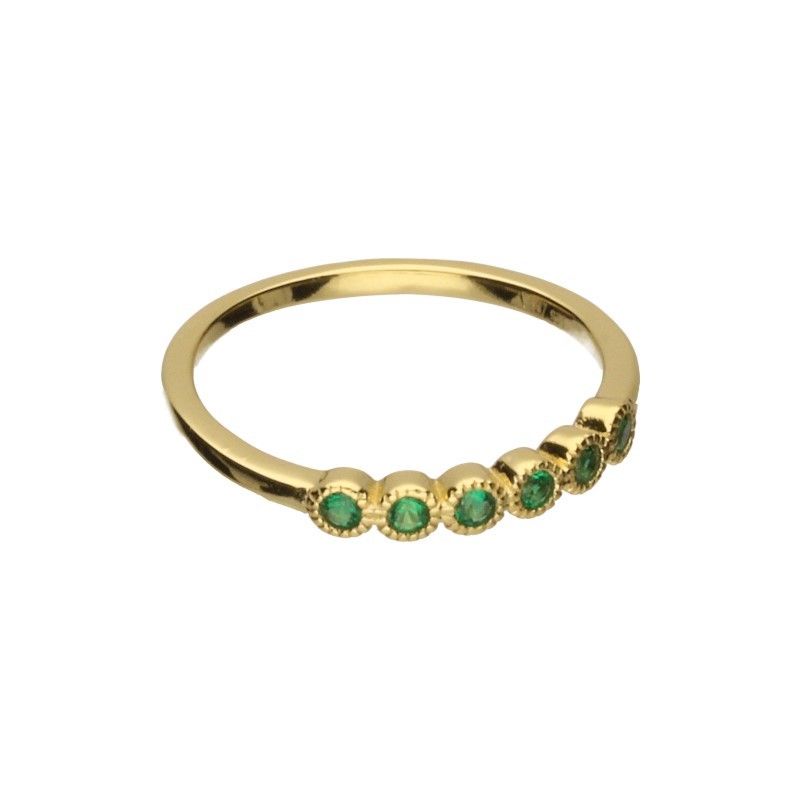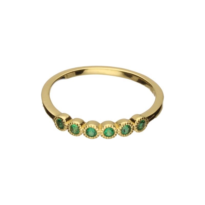 RING, 925 SILBER, VERGOLDET MIT 24 KARAT GOLD, EMERALDFARBIGER ZIRKONIA, ABMESSUNGEN DES DEKORATIVEN MOTIVS 2,5 mm X 15 mm.