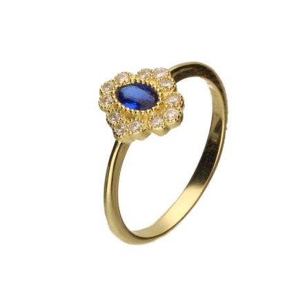 RING TYP MARQUIS, 925 SILBER, VERGOLDET MIT 24 KARAT GOLD, WEISS UND SAPHIR-ZIRKONIUM, ELEMENTABMESSUNGEN 9 mm X 10 mm.