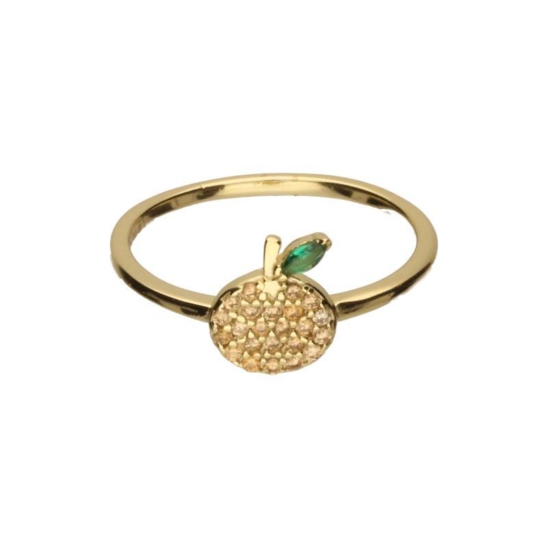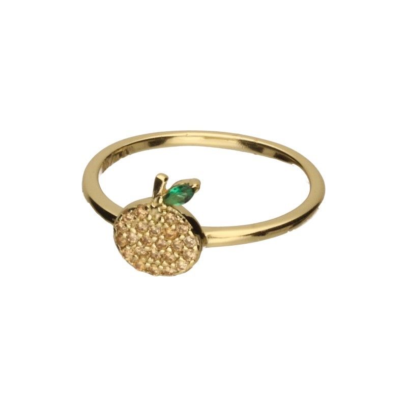 RING AUS 925-SILBER, VERGOLDET MIT 24-KARAT-GOLD, BUNTEN KLEINEN ZIRKONIEN, MANDARINEN, GRÖSSE 7 mm X 10 mm.