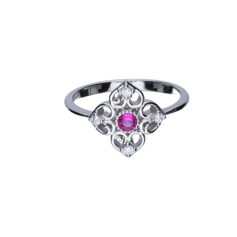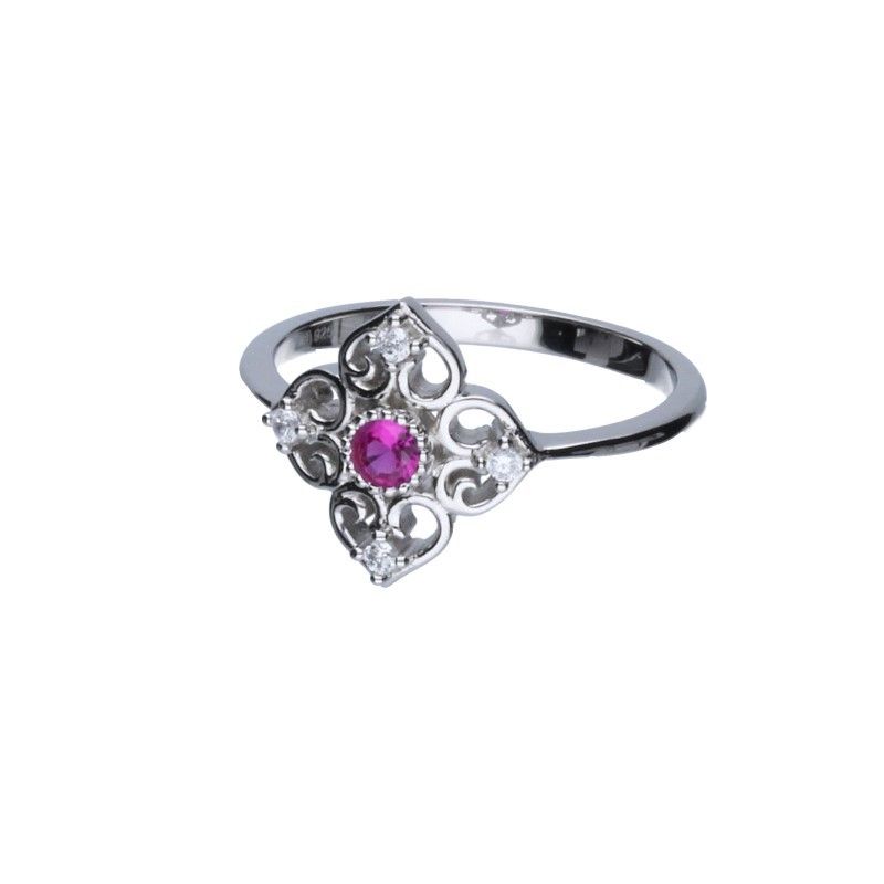 AZURA-RING, 925 SILBER RHODIUMBESCHICHTET, ZIRKONIEN IN FUCHSIA UND WEIß, ABMESSUNGEN DES DEKORATIVEN MOTIVS 12 mm x 12 mm.