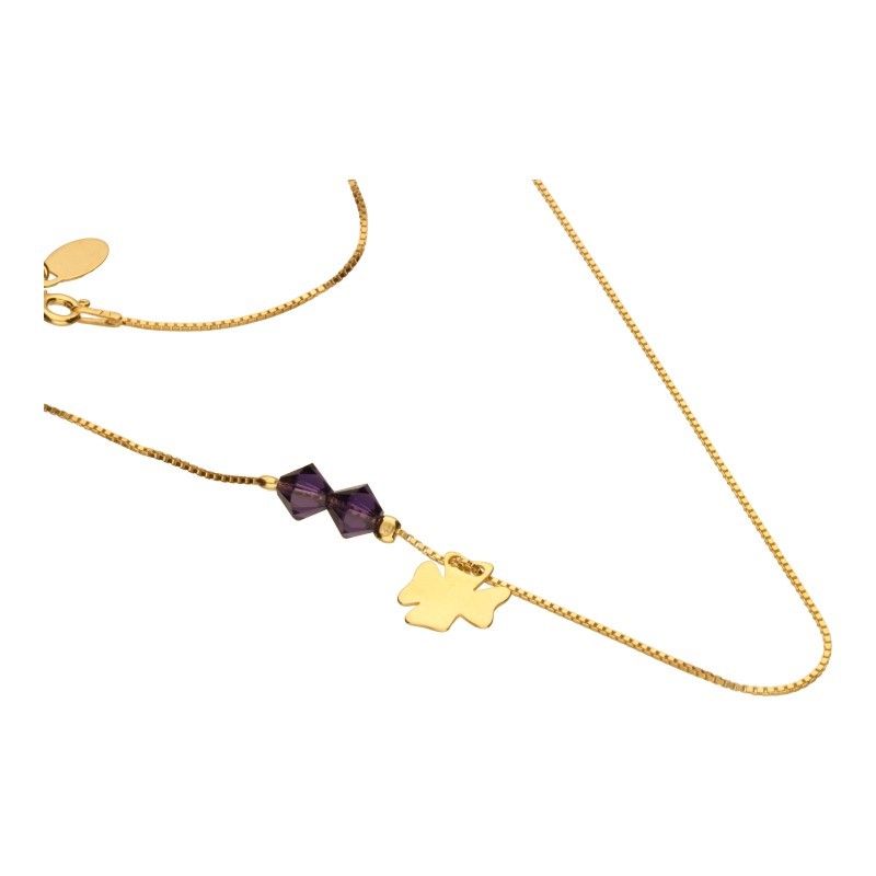 HALSKETTE, 925 SILBER, VERGOLDET MIT 24 KARAT GOLD, VENICE CUB-KETTENWEBUNG, LÄNGE 41 cm, ZWEI SWAROVSKI-KRISTALLE IN AMETHYSTFARBE, KLEEGRÖSSE 10 mm X 10 mm, MECHANISCH POLIERT.