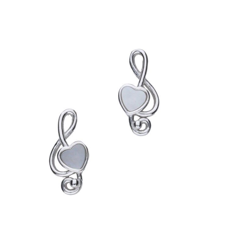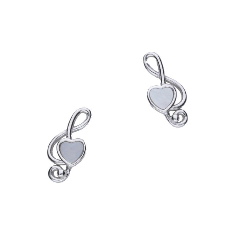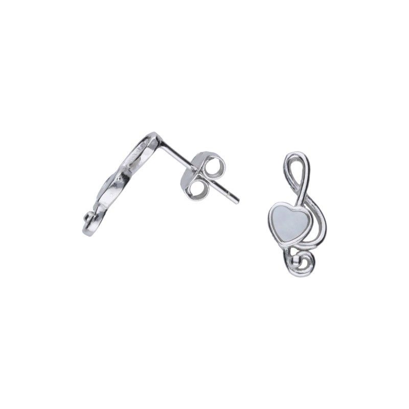OHRRINGE AUF STÄBCHEN, 925 SILBER, RHODINIERT, PERLMUTT, HERZ, BAUMSCHLÜSSEL, OHRRINGABMESSUNGEN 6 mm x 14 mm.