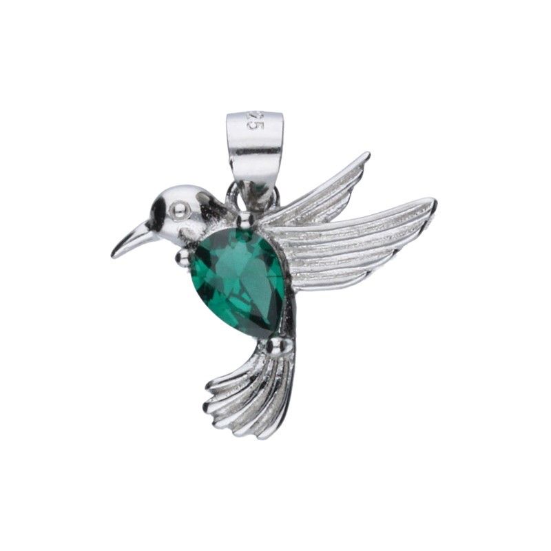 ANHÄNGER AUS 925-SILBER, RHODINIERT, EMERALD-ZIRKONIA, HUMBBING, ANHÄNGERABMESSUNGEN OHNE BAND 18 mm x 18 mm.