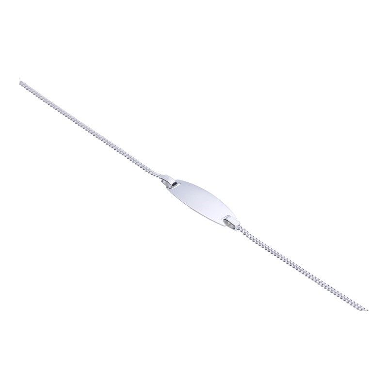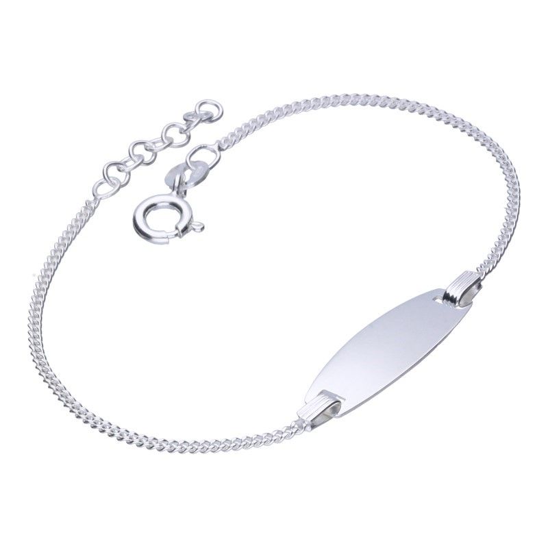 KINDERARMBAND AN EINER RÜSTUNGSGEWEBEKETTE, 925 VERSILBERT, LÄNGE 14 cm + 2 cm VERLÄNGERUNG, GLATTE PLATTE, PERFEKT ZUM GRAVURIEREN, GRÖSSE 7 mm x 21 mm.