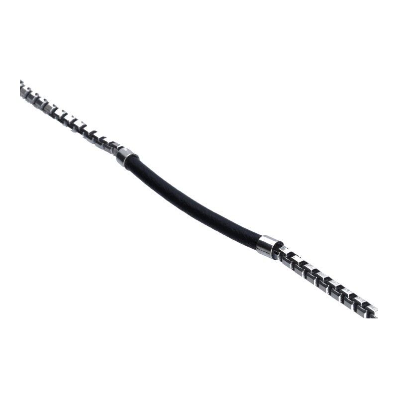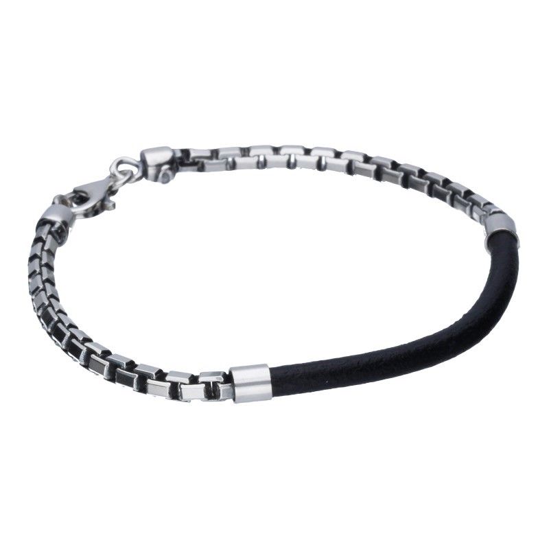 HERREN-ARMBAND, KOMBINATION AUS SCHWARZEM NATURLEDER UND OXIDIERTEM 925er SILBER, LÄNGE 21 cm, DURCHMESSER 4 mm, VENICE CUB-GEWEBE, LOABS-KLEMME.