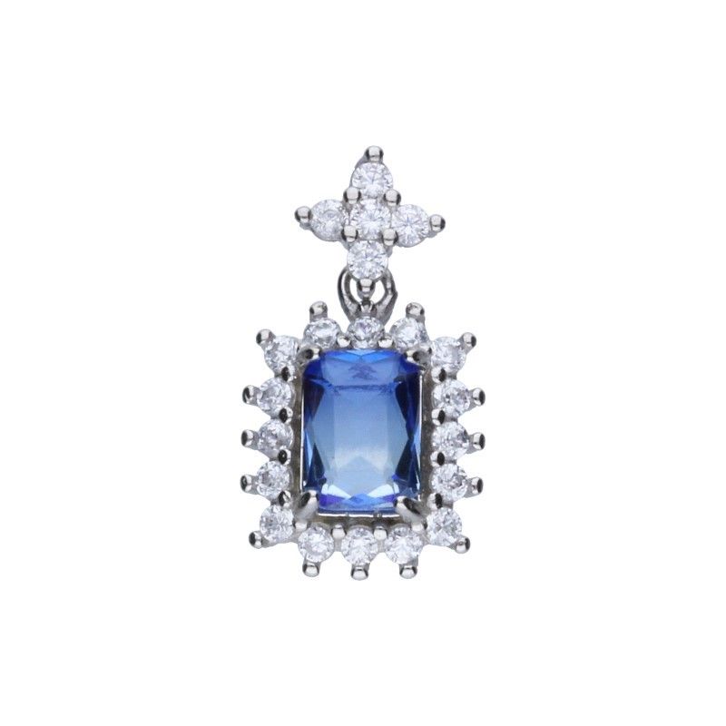 MARQUISE-ANHÄNGER, 925 SILBER, RHODIUMBESCHICHTET, BLAUER STEIN IN DER MITTE UND WEISSER KLEINER ZIRKONIA, ANHÄNGERABMESSUNGEN 12 mm x 20 mm.