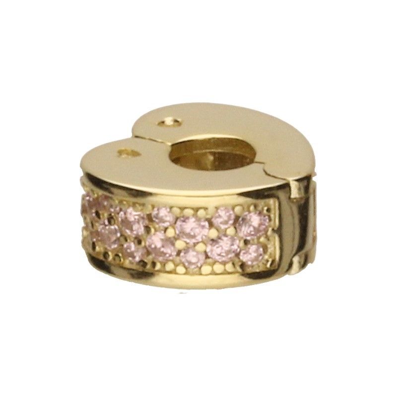 Perlenarmband, 925 Gold -plattiert 24 Karat Gold, rosa Strasssteine, Herz mit Abmessungen von 10 mm x 11 mm.