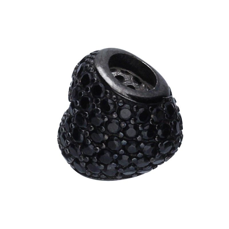 Perlenanhänger modulare Armbänder mit einem Durchmesser von max. 3 mm, Silber 925 Rhodium -Rhodium, schwarze Strasssteine, Herz, Herz, Perle mit Abmessungen von 11 mm x 11 mm.