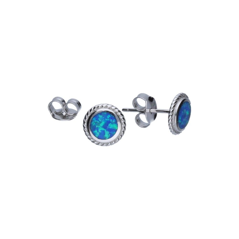 Pick -up -Ohrringe, 925 Rhodiumsilber, blau in blau in einem silbernen dekorativen Rahmen, 8 mm Ohr -Durchmesser.