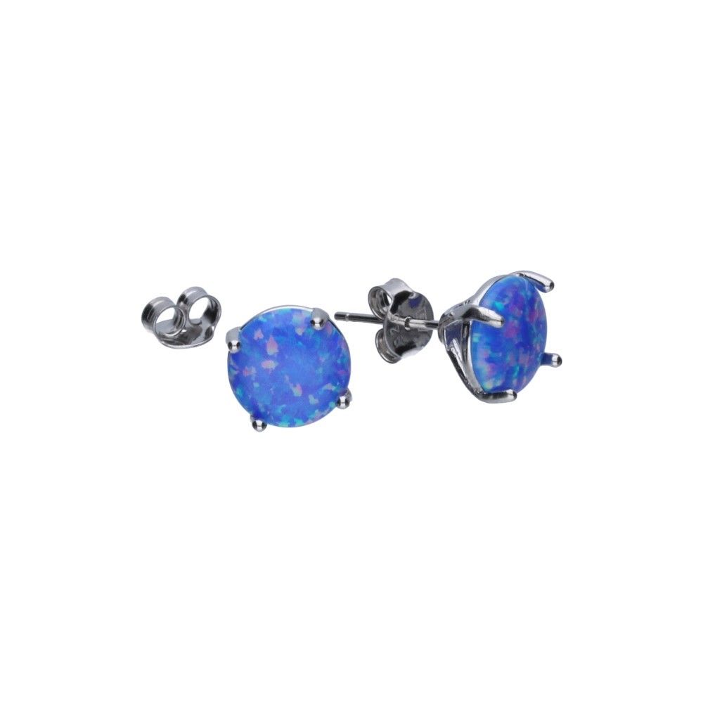 Pick -up -Ohrringe, 925 Rhodium, blaues Tap -Silber mit rosa schimmernden Partikeln, in Silberpfoten abgerundet und 9 mm Durchmesser abgerundet.