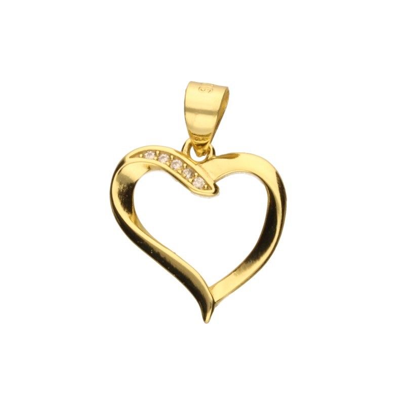 ANHÄNGER MIT DURCHGESCHLOSSENEM HERZ, 925 SILBER, VERGOLDET MIT 24 KARAT GOLD, WEISSEM ZIRKONIA, ANHÄNGERABMESSUNGEN OHNE BAND 15 mm X 16 mm.\r\n\r\n