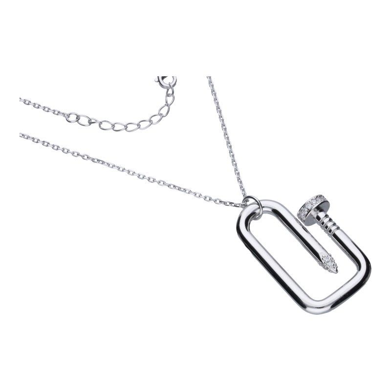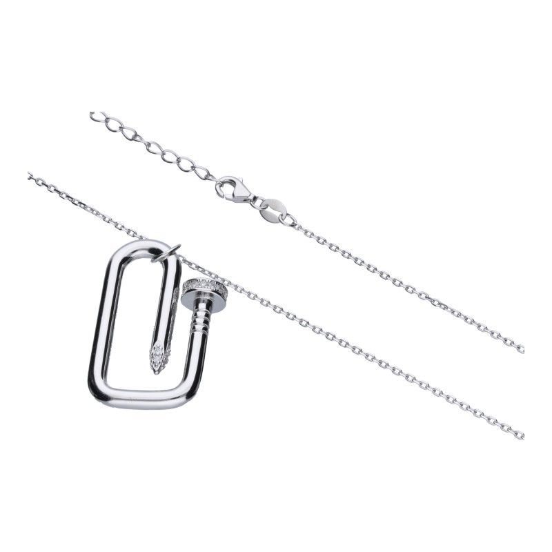 HALSKETTE MIT DEKORATIVEM NAGEL, 925er SILBER, RHODINIERT, WEISSER ZIRKONIA, LÄNGE 42 cm + 3 cm VERLÄNGERUNG, ELEMENTABMESSUNGEN 23 mm x 33 mm.
