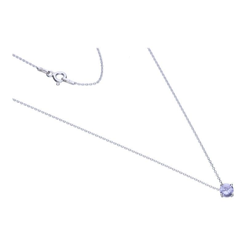 HALSKETTE MIT RUNDEM ZIRKONIA, FARBE LAVENDEL, DURCHMESSER 5 MM, 925 VERSILBERT, LÄNGE 44 CM. \r\n\r\n