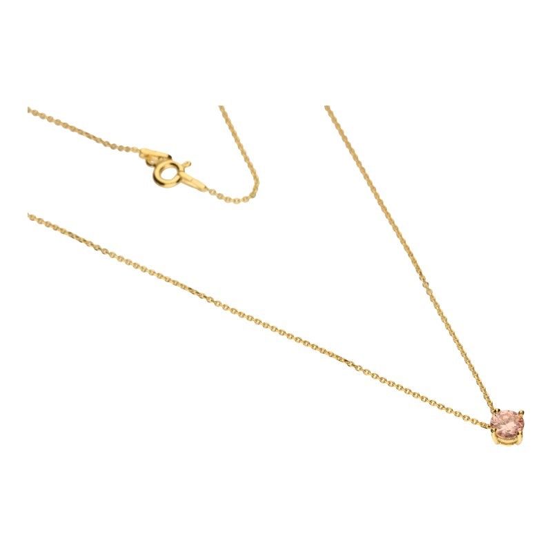 HALSKETTE MIT RUNDEM ZIRKONIA, ROSA, DURCHMESSER 5 MM, 925 SILBER, VERGOLDET MIT 24 KARAT GOLD, LÄNGE 44 CM. \r\n\r\n