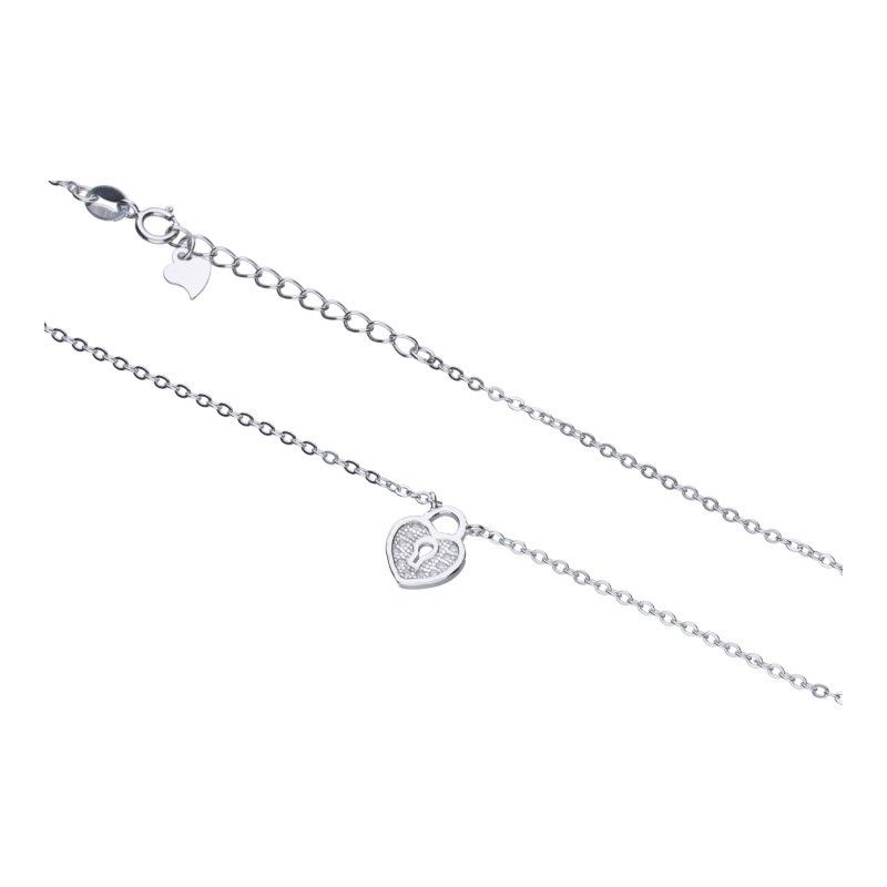 Halskette an einer Kette mit Zorngeflecht, 925er Silber, rhodiniert, Länge 42 cm + 3 cm Verlängerung, weißer Zirkon, Herz, Herz mit Schlüssel, Größe 9 mm x 11 mm. \r\n