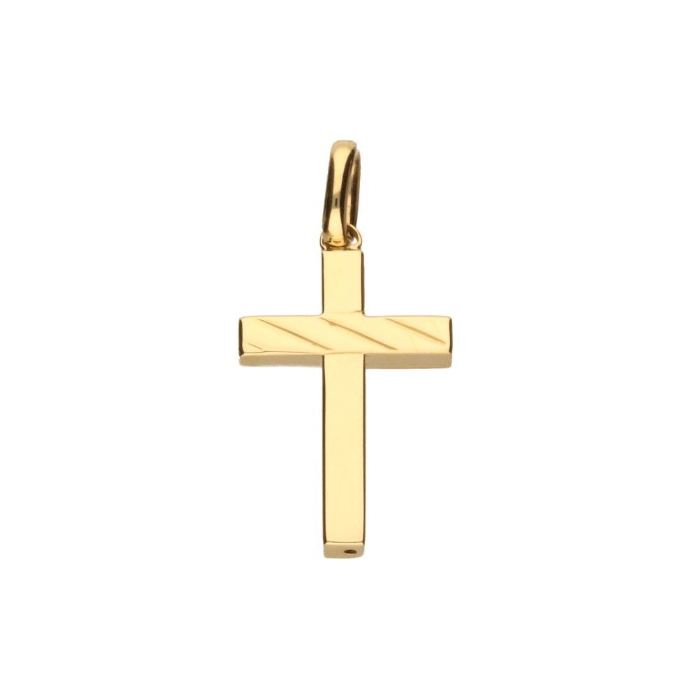 GERADE KREUZ, OHNE BILD, KREUZSTRAHLER IM DIAGONALEN MUSTER GEPRÄGT, 585 GOLD, ABMESSUNGEN OHNE BAND 22mm X 15mm, 14K.