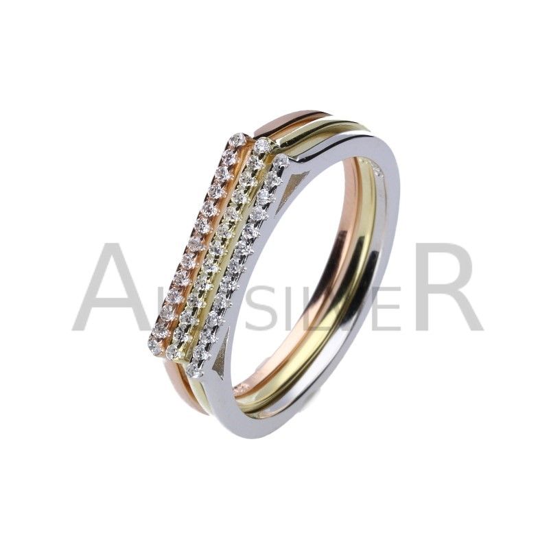 RING BESTEHEND AUS DREI TRAURINGEN, 925 SILBER, RHODINIERT, VERGOLDET MIT 24 KARAT GOLD UND ROSA VERGOLDET, WEISSER ZIRKONIA.
